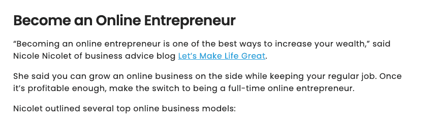 - GoBankingRates – 10 Top Ways To Become Rich Without Working for Somebody Else
